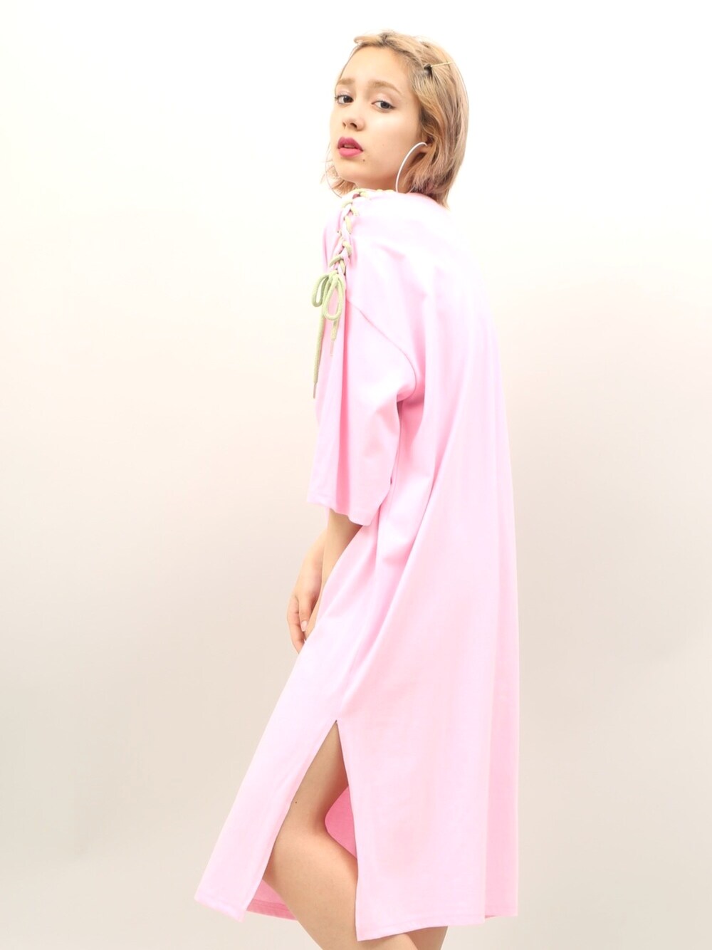 袖のレースアップがポイントの ゆったりビッグTワンピ! 変え紐がついているので 気分で変えられます🎵