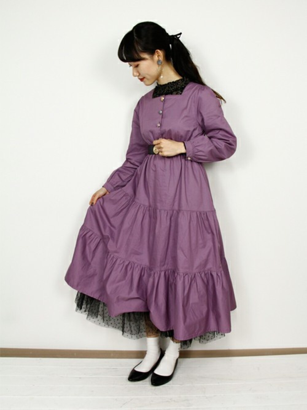 ワンピにレース&チュールをプラスして ロマンチックなコーデ♡