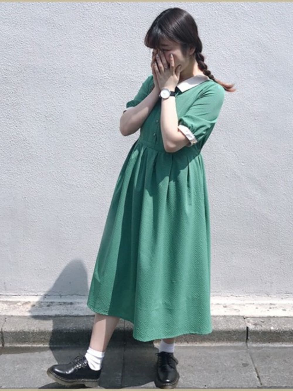 ParAvionのワンピース「チェックタックワンピース」を使ったコーディネート