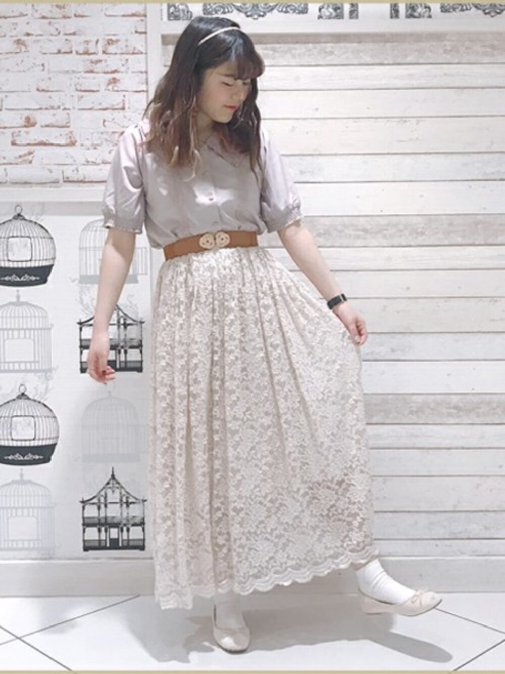 柔らかいレースをふんだんに使ったスカート。 総レースだけど、甘すぎないのは光沢感がないシンプルな生地だから♡ ベルトを差し色に、ウエストマークすることで メリハリをつけることができます♪