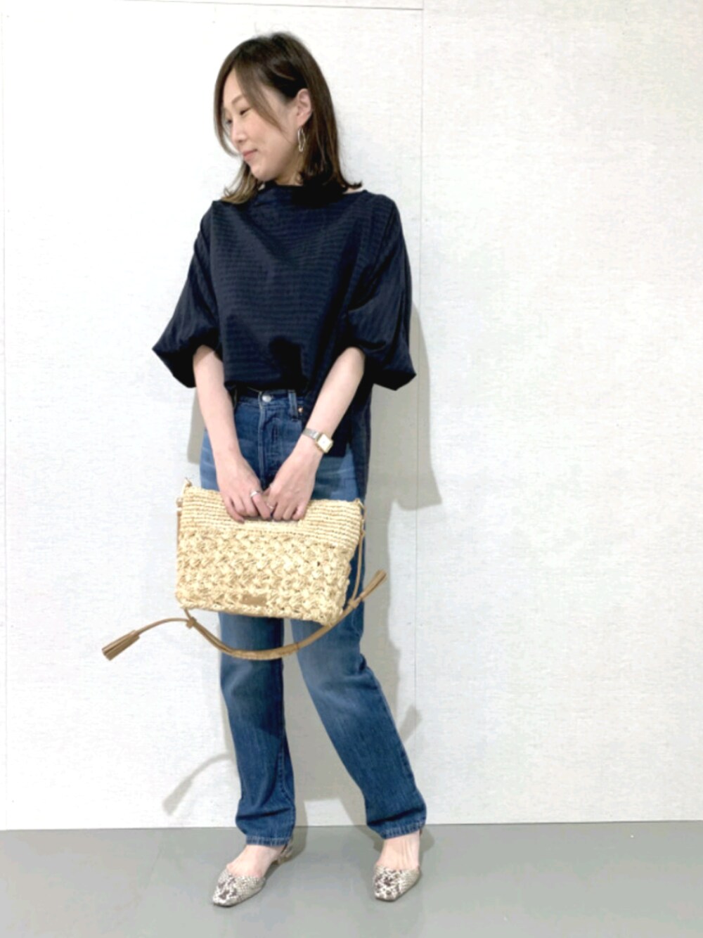 づっきー(コレックス大阪髙島屋店)のシャツ/ブラウス「ギャザースリーブボーダーブラウス」を使ったコーディネート