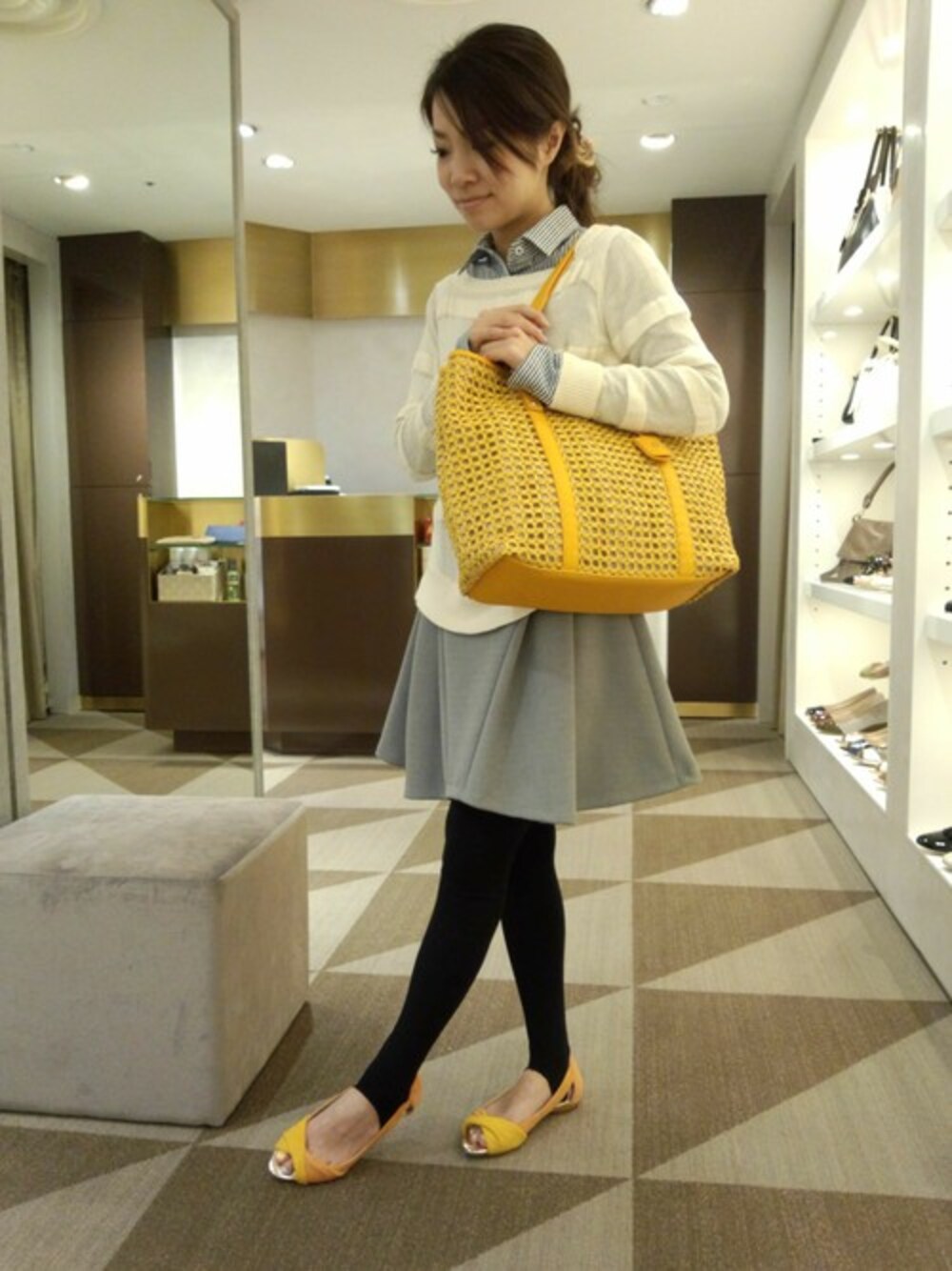 山Pのパンプス「AU/クロスオープントゥフラットパンプス」を使ったコーディネート
