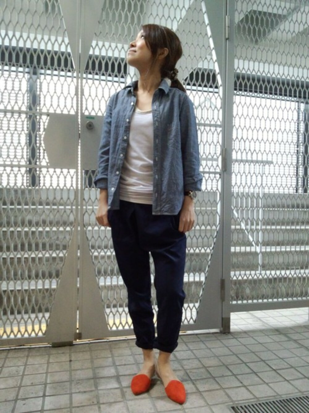 山Pのパンプス「AU/セパレートフラットパンプス」を使ったコーディネート