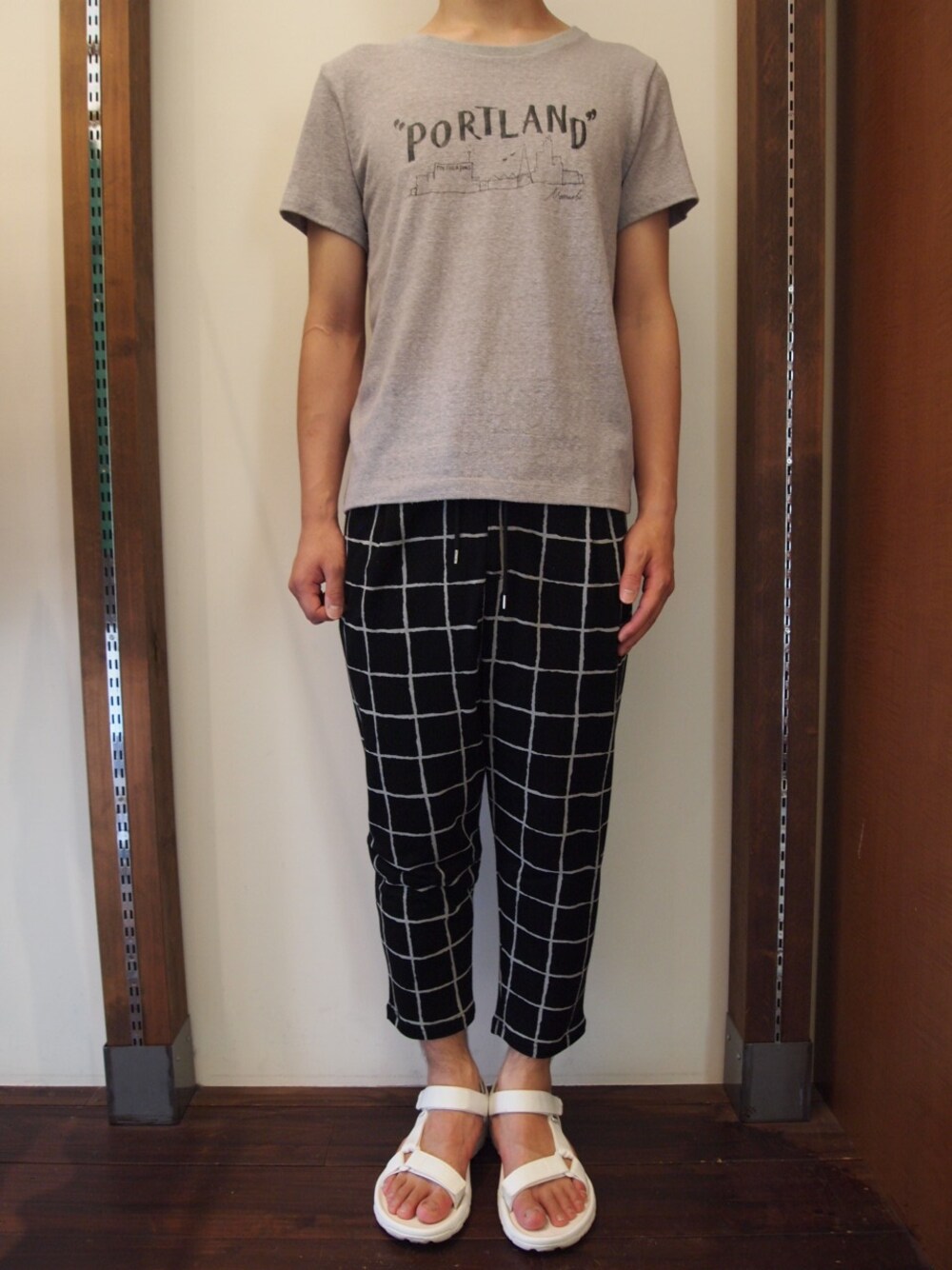 涼しげなシルク混の素材感が魅力のCloakletのTEEに、 サルエルパンツを合わせたリラックスなコーディネート。 プリントがとてもセンス良い1枚なので、 シンプルに合わせました。 夏のモノトーンも、軽やかな素材感をチョイスすることで 涼しげに着られると思います。