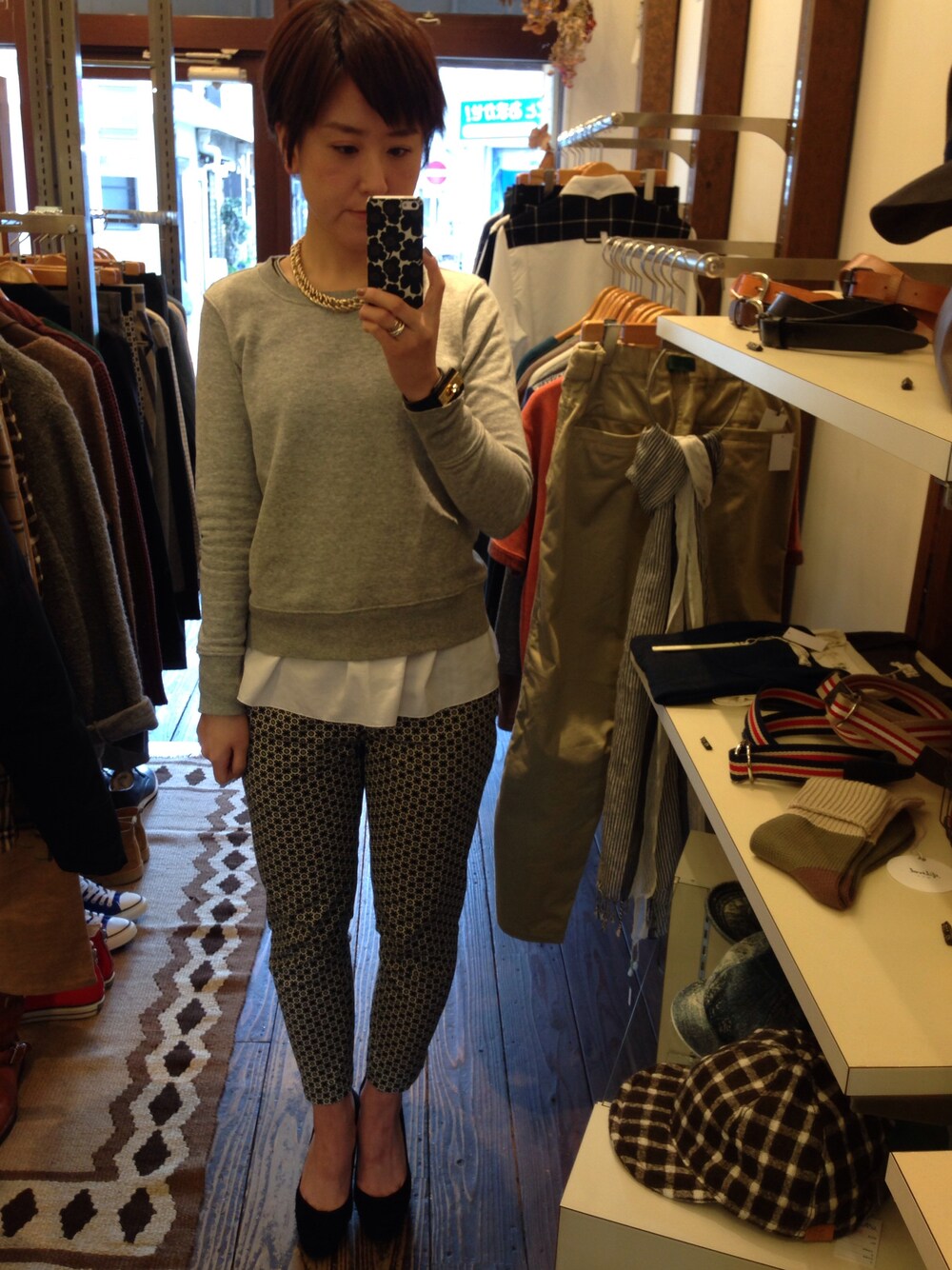 今日のワタシ。 むかーーし買った、クルースウェットが大活躍しそうなこの春。 ヒラっとしたインナーキャミソールを買い足したので、レイヤードしました。 DISCOVEREDのCOMMON PANTSは、SIZE(0)でいい感じに履けます。 SUMMERのチェックパンツも個人オーダーしたので、楽しみっ♪♪ にしても、生足パンプス、ちょっと早まりました・・・(寒)