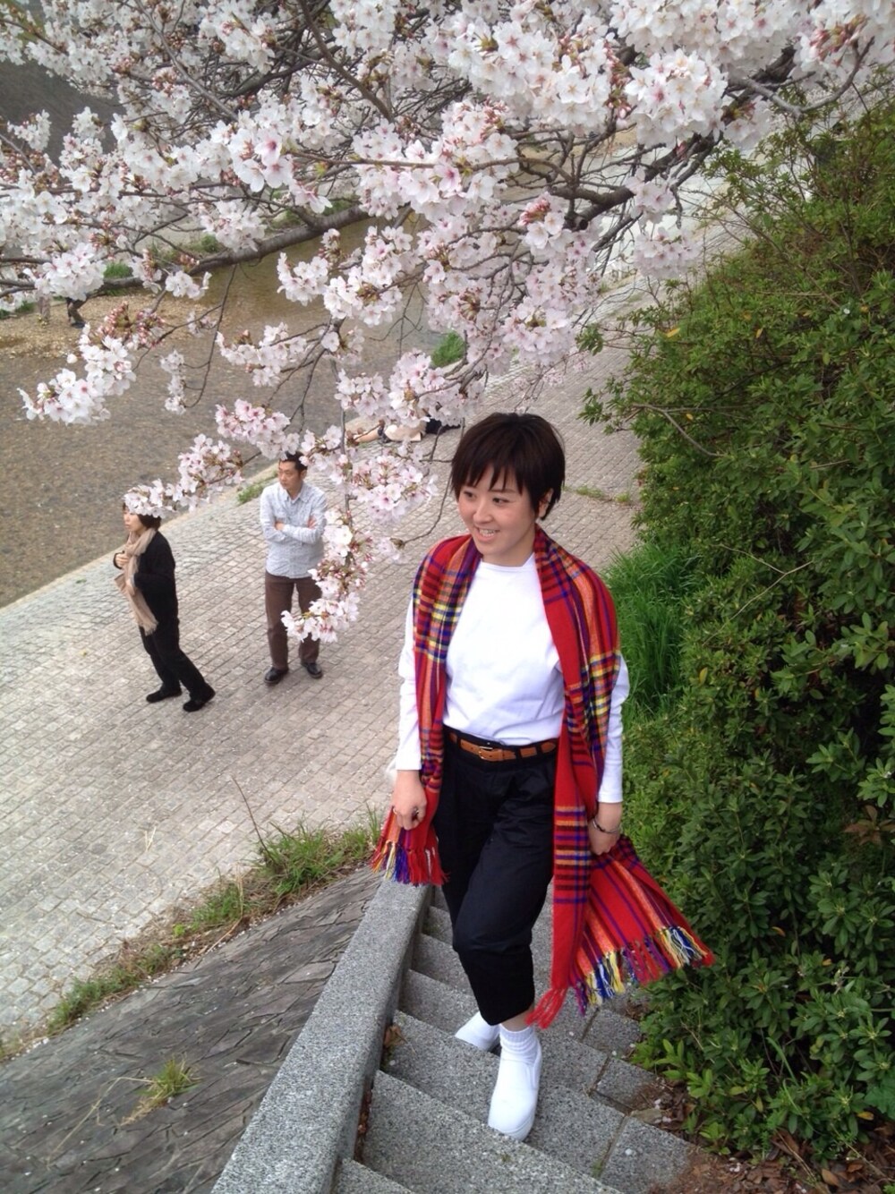 TOPS HYKE PANTS DISCOVERED BAG MANHOOD SOX Chanpion お休みの今日は、名古屋の山崎川へお花見に来たので、ワザとらしい構図で写真を撮ってもらいました。 今が見頃のまさに満開*\(^o^)/* で、なんだこの構図(笑