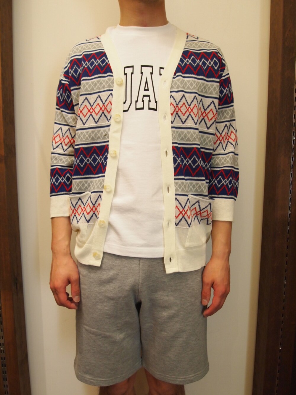 PAJAMAと書かれたセットアップに、カーディガンを羽織った休日スタイル。 リラックスした装いも、たまにはしたいですよね。 セパレートでもそれぞれ楽しめるので、 セットアップでも、別々でも、色々なコーディネートに使って欲しい、 .efiLevolのセットアップです。