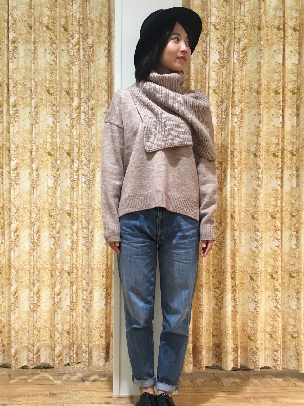 staffコーデ by haseのニット/セーター「スヌード付きVネックニット」を使ったコーディネート