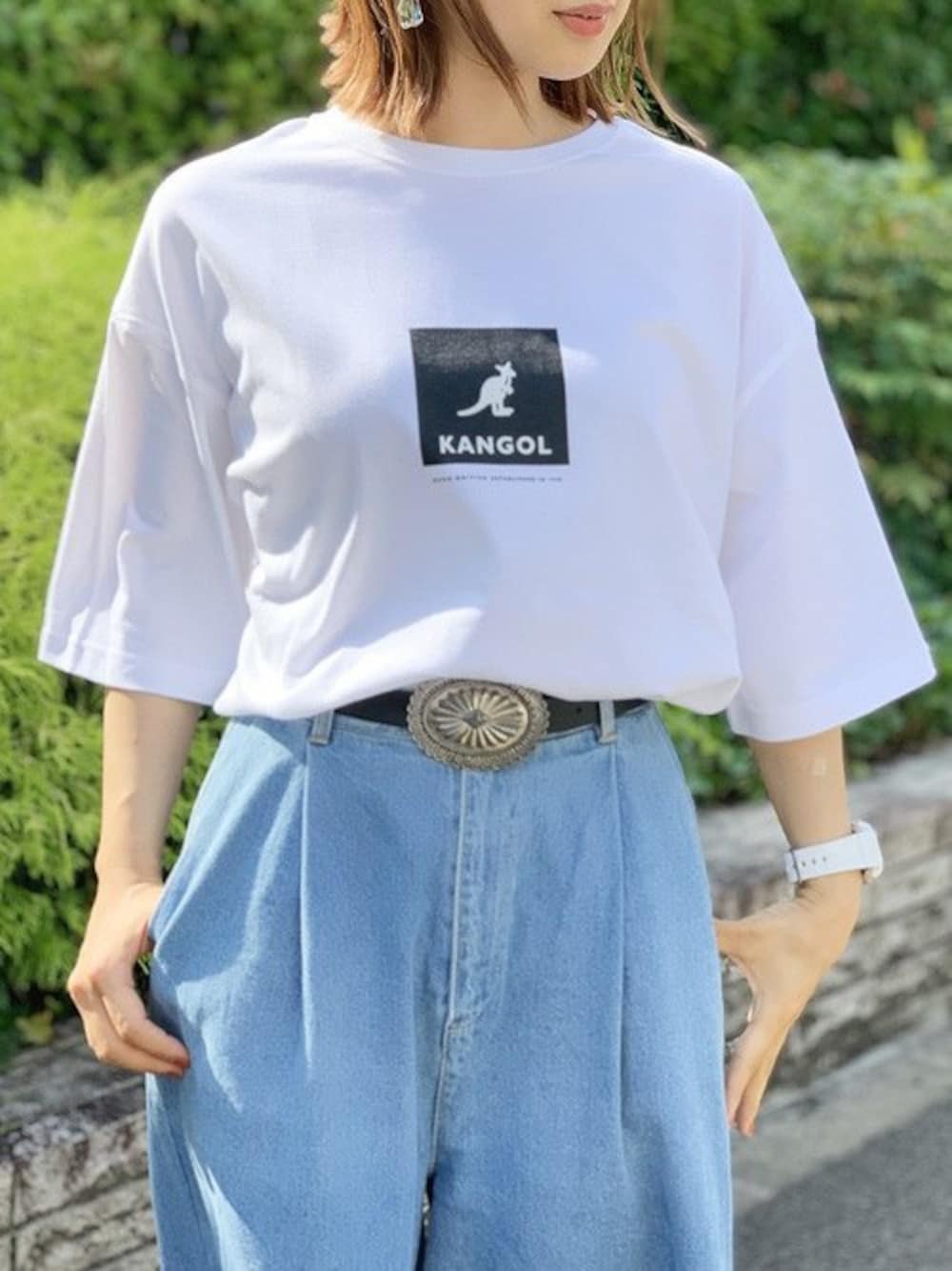 【7/25 12:00から7/28 26:00までセール価格で販売中!!】 【KANGOL / カンゴール】 ビッグシルエット BOX プリント Tシャツ シンプルなカンゴールのボックスロゴが可愛いTシャツを、デニムと合わせてカジュアルに着こなしました! メンズのLサイズを女の子が着るとルーズな印象になってオススメです♪ 生地感もしっかりしているので安心して着られます!