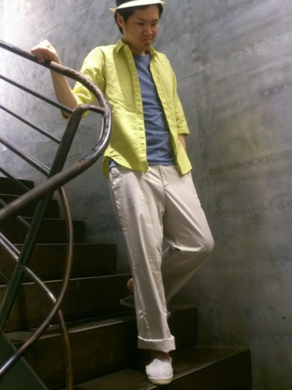 じめっとしたこの時期には通気性のいいこのシャツがおすすめ! 夏になっても着られるカラーと素材感も嬉しいですよね。