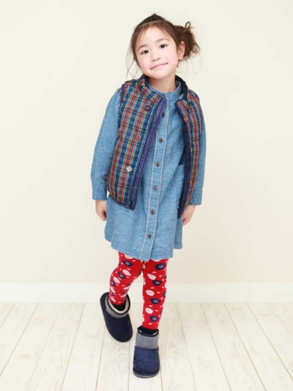 薄くて軽いナイロン素材で裏面はあたたかいボアフリースを使用した、タータンチェックが印象的なリバーシブルベストです。 肩を秋らしいチェックで切り替えたナチュラルでかわいいシルエットのワンピース。 キュロットやスカートなどどんなお洋服とも合わせやすいお花のモチーフがキュートなレギンス。