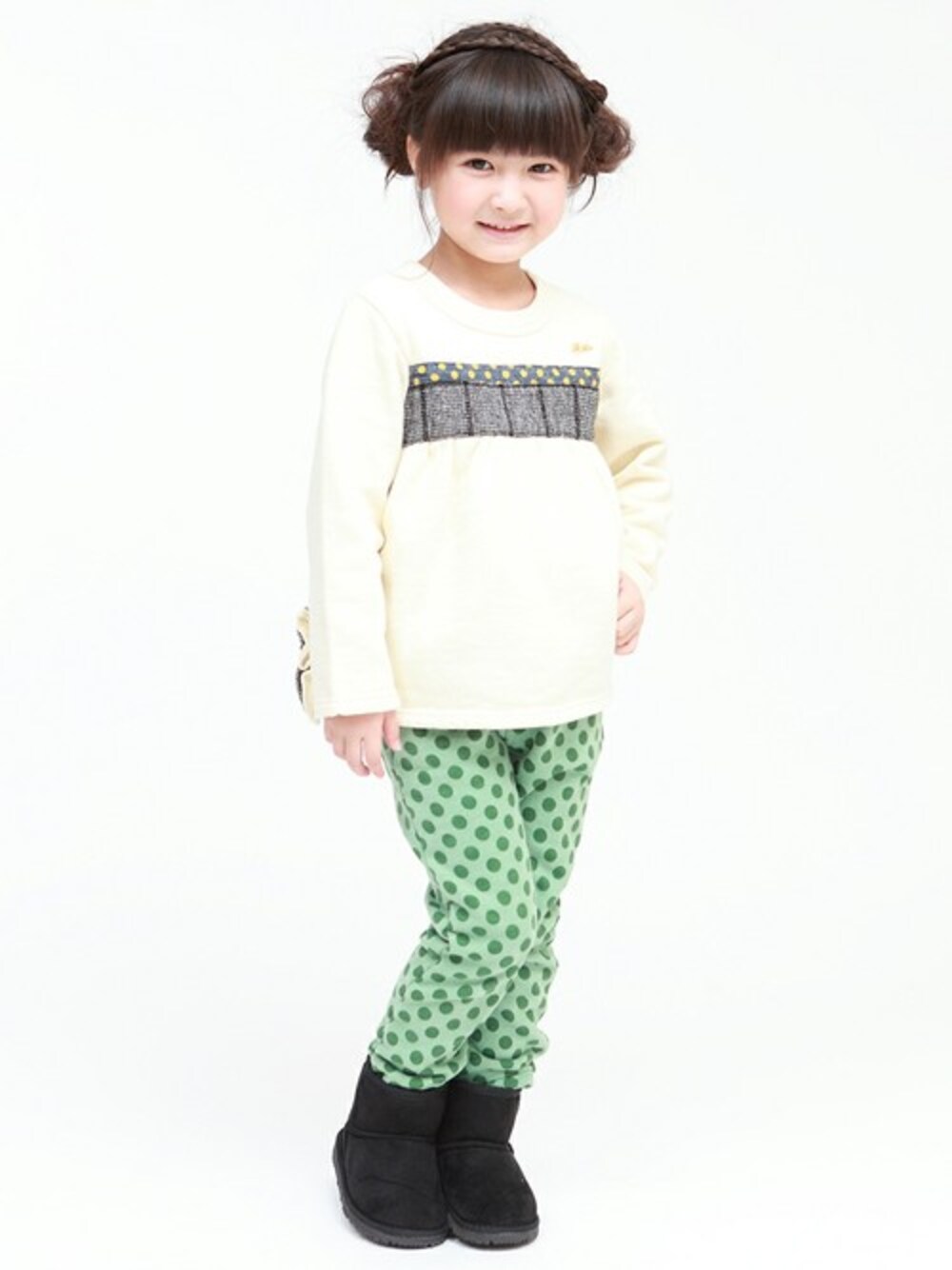 裏起毛トレーナーは、シックなチェックやドットのパッチワークがアクセント。ギャザー切り替えやフリルも女の子らしいキュートなデザイン。 ロングパンツは、カットソーで細身のシルエットがスタイリッシュな裏起毛素材。見た目はシンプルですが、柄のボタンやパイピング、裾のレースが、シンプルさだけじゃない。ラグマートクオリティ!
