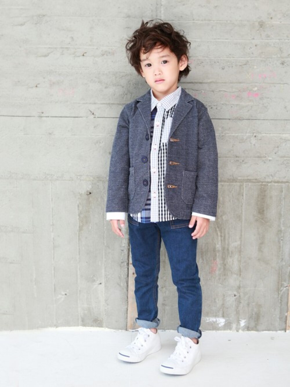 ジャケットスタイルでクールに決めました! 入園入学、結婚式にも使えそうですが、伸縮性のあるカットソーなのでカジュアルに着回すのがオススメですね! インナーにTシャツを合わせるとまた違った表情になります。