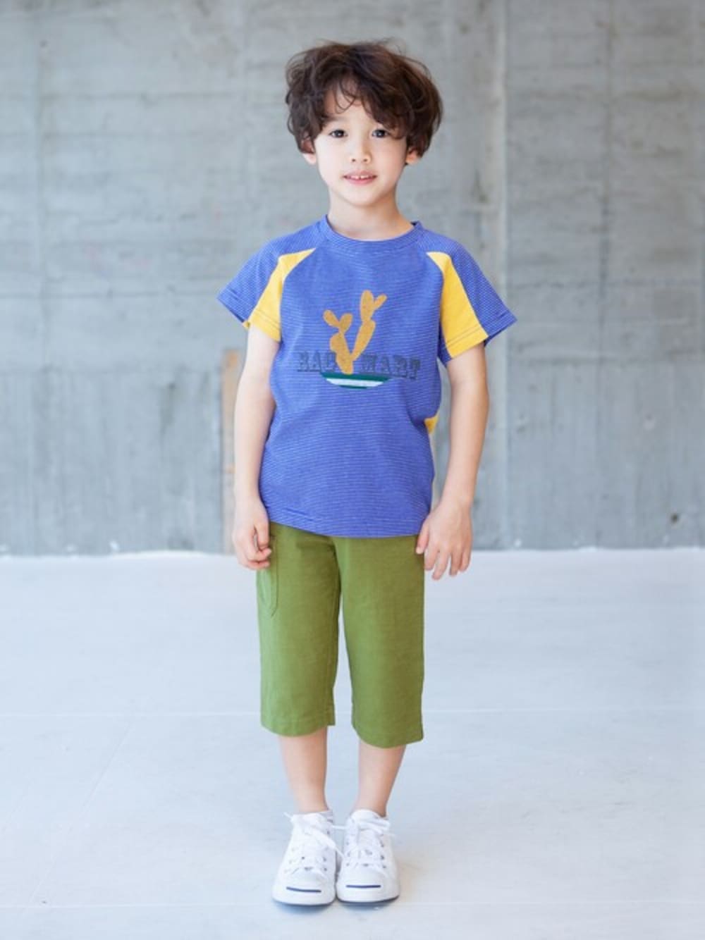 ボーダープリントTシャツ 細いピッチのボーダーTシャツ。 よくあるボーダーではなく、袖と背中側を無地の生地で切り替えているので、 他にはないラグマートならではのデザインになっています。 商品コード : 1105623-2105623