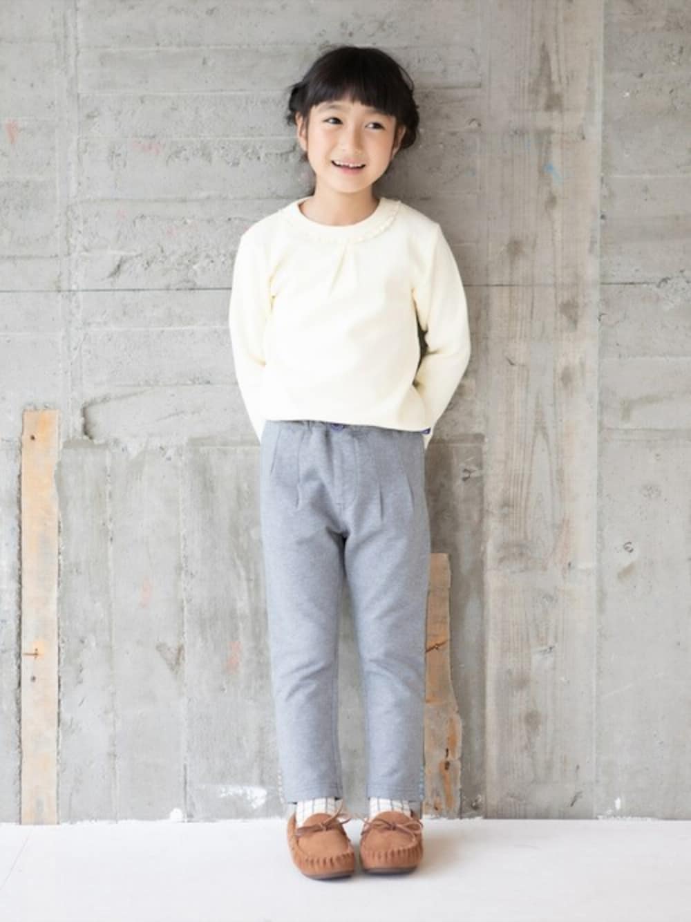 ホワイト系のTシャツ/カットソーを着用したキッズの秋コーディネートの1枚目の写真