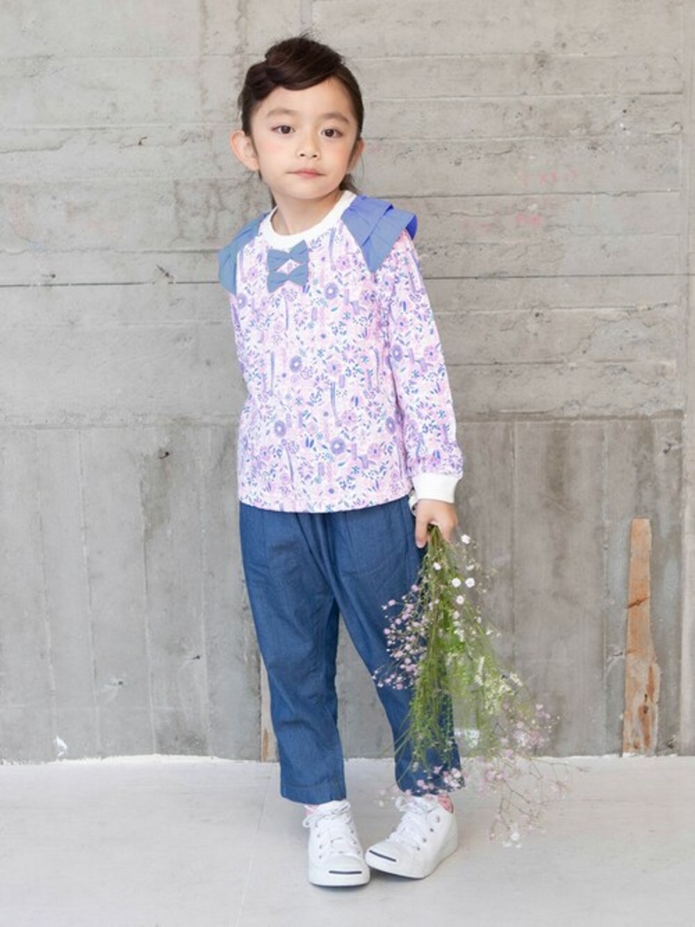 肌触りの良い接結素材を使用したAラインのプルオーバー。 色ごとに異なるポップな総柄と肩のフリルがとってもキュート。 同素材でワンピースもあり、ペアコーデをお楽しみいただけます。