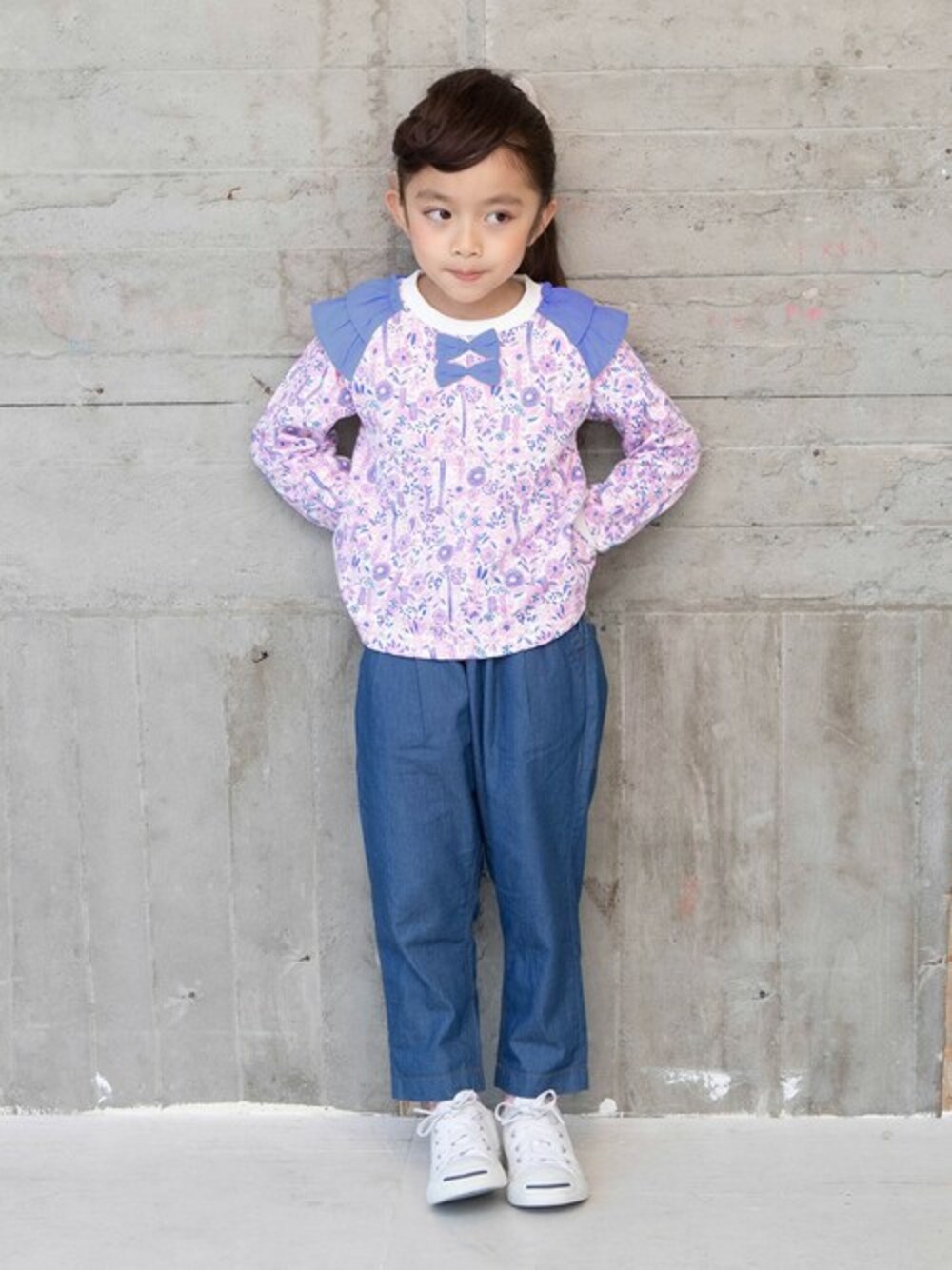 肌触りの良い接結素材を使用したAラインのプルオーバー。 色ごとに異なるポップな総柄と肩のフリルがとってもキュート。 同素材でワンピースもあり、ペアコーデをお楽しみいただけます。