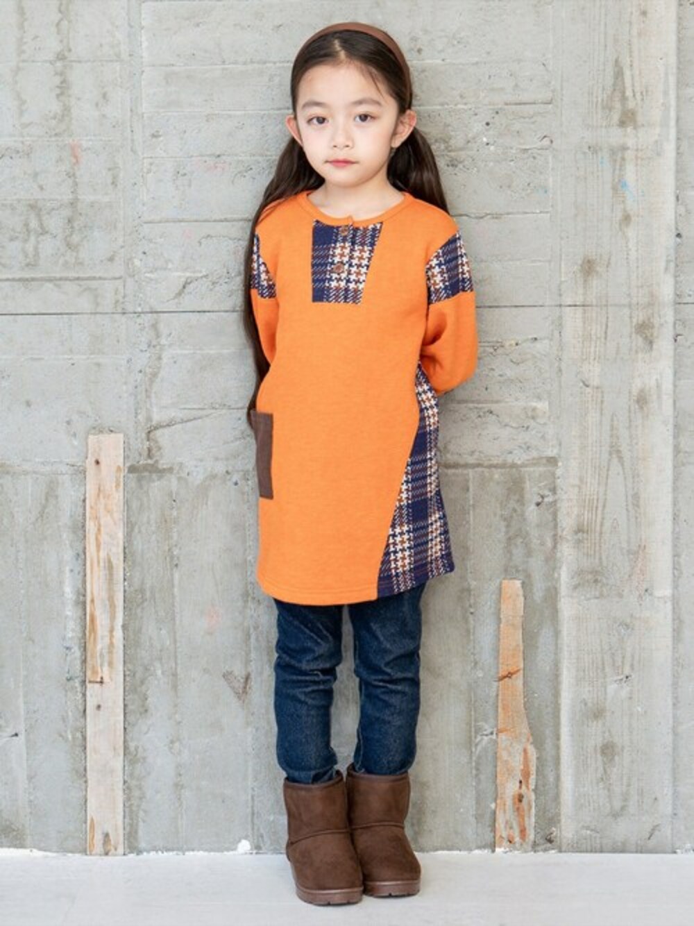 切り替えのノルディック柄が冬ムードたっぷりのワンピース。シャツコールのポケットもアクセントになっています。 裏起毛素材で保温性も高く、寒い冬も温かく過ごせます。 同じ柄のトレーナーもあり、兄妹でお揃いコーデを楽しめます。