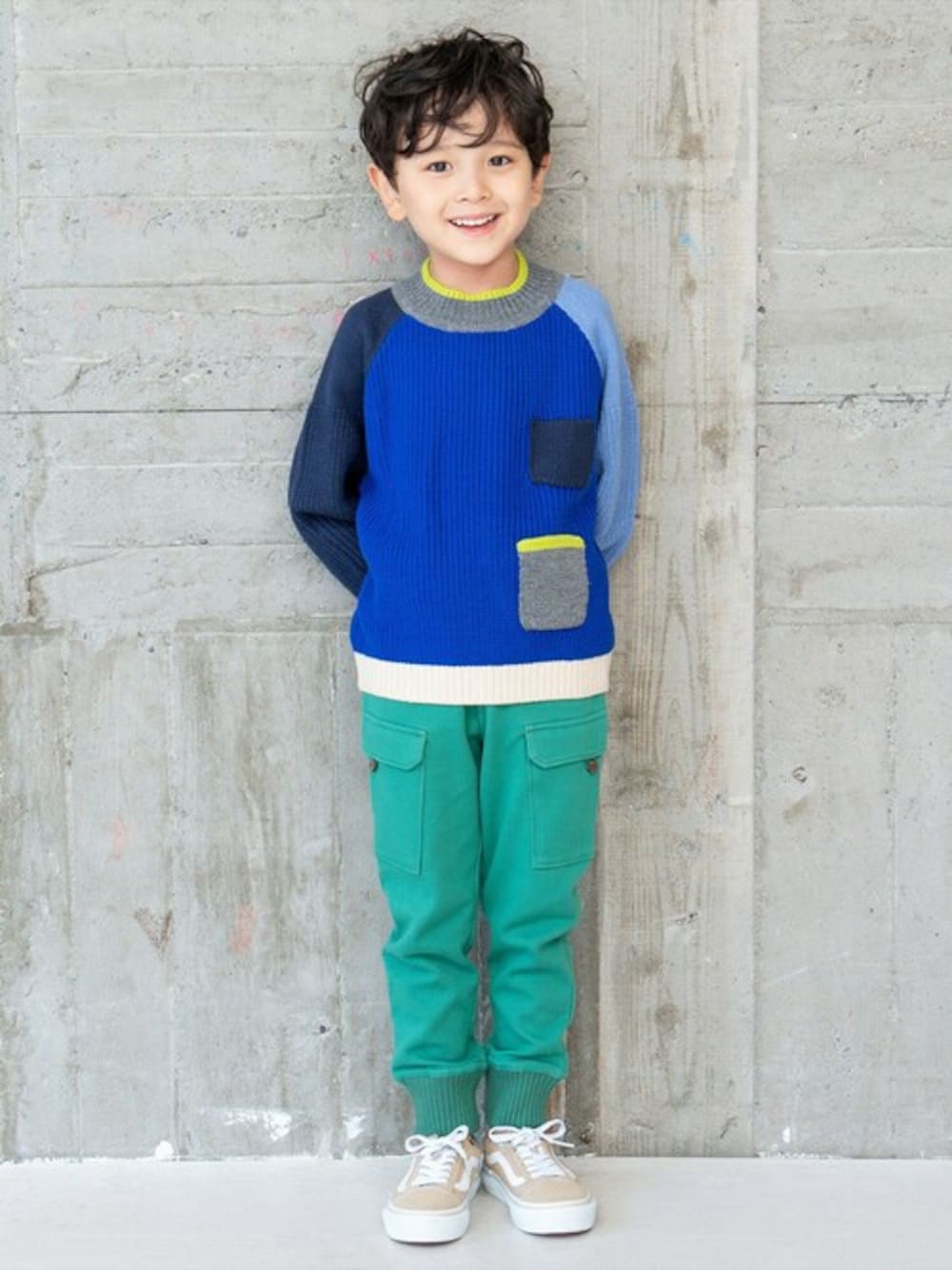 パーツごとの配色切り替えがポップなニット。表情が異なる編地もアクセントになったデザイン。 軽くてお手入れしやすい暖かなアクリル素材で寒い冬も暖かく過ごせます。