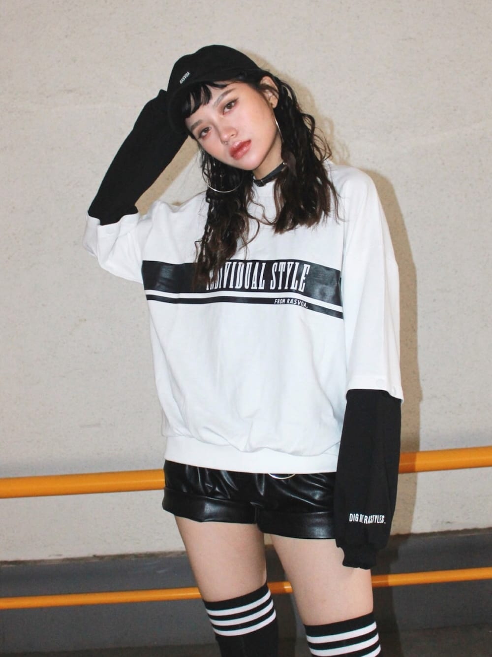 重ね着してるようなデザインのスウェットを使ったコーデです♫ 袖のロンT部分はスナップボタンで取り外しができ、ホワイトの5分袖トップスとしても着用していただけます♫