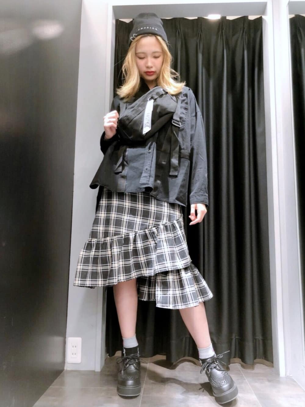 チェックフリルスカートをストリートライクに着こなすコーデ♫