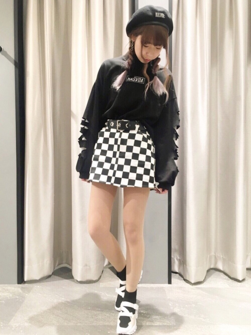 RASVOA STAFFのスカート「チェッカーズチェックフェイクスカート」を使ったコーディネート