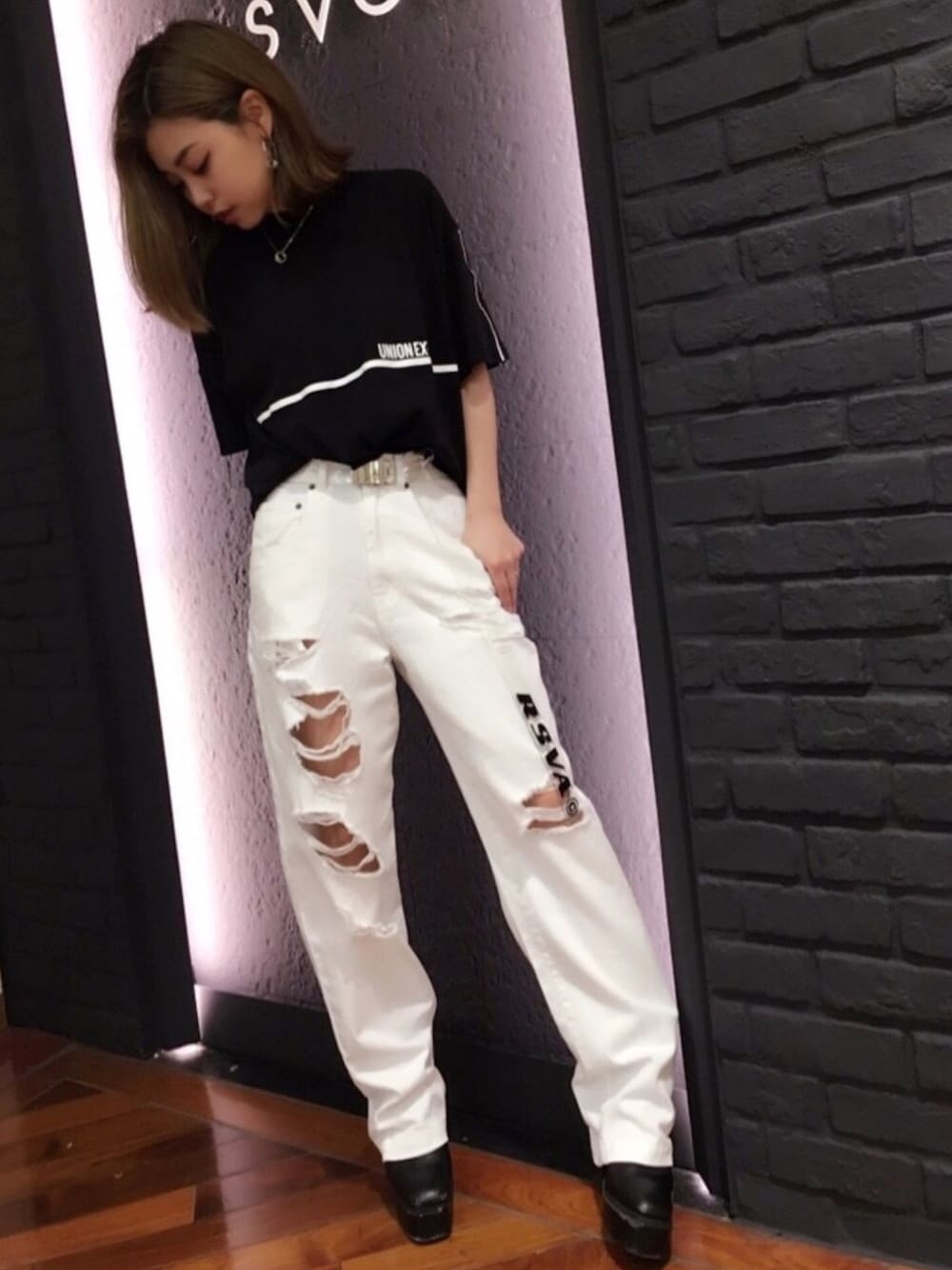モノトーンのシンプルなコーデ♫ ダメージパンツで夏らしさもプラスできます♫ ZOZOTOWNでご購入もできます♫