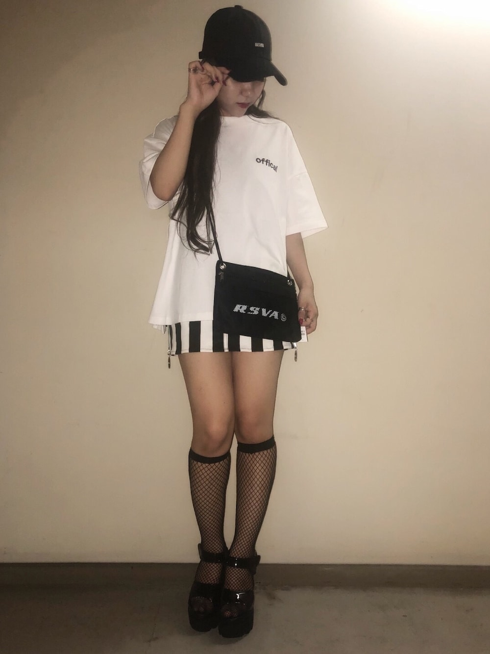 スポーツMIXなモノトーンコーデには ストライプスカートや、メッシュソックスがポイントになってCOOLな印象に♪ ZOZOTOWNでもご購入できます♪
