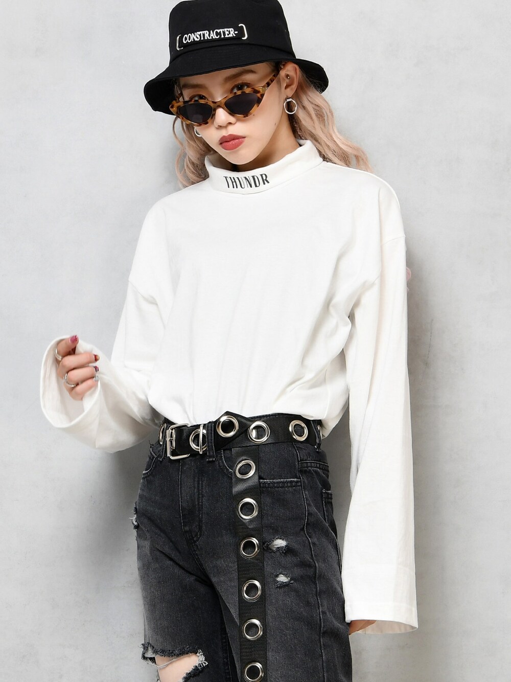 シンプルなハイネックロンTは、インパクトのあるサングラスや、ベルトで コーディネートもアップデート♪ ZOZOTOWNでもご購入できます。