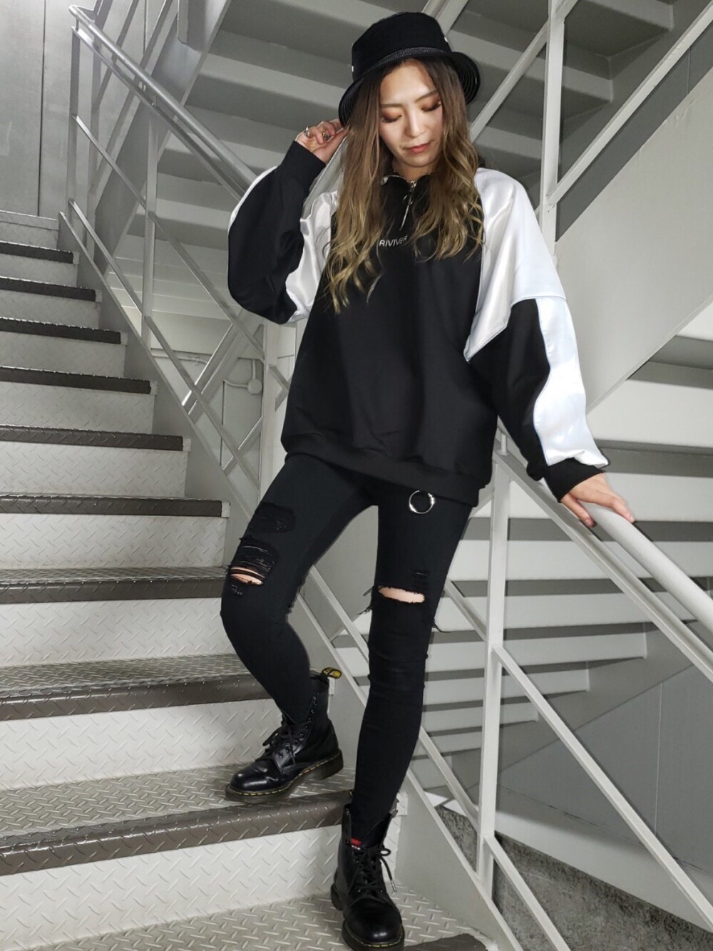 RASVOA STAFFのスウェット「サテンジャージパイピングプルオーバー」を使ったコーディネート