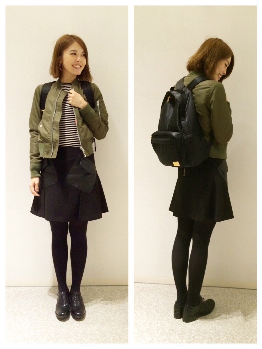 モノトーンコーデに、KAHKIのMA-1を合わせて。