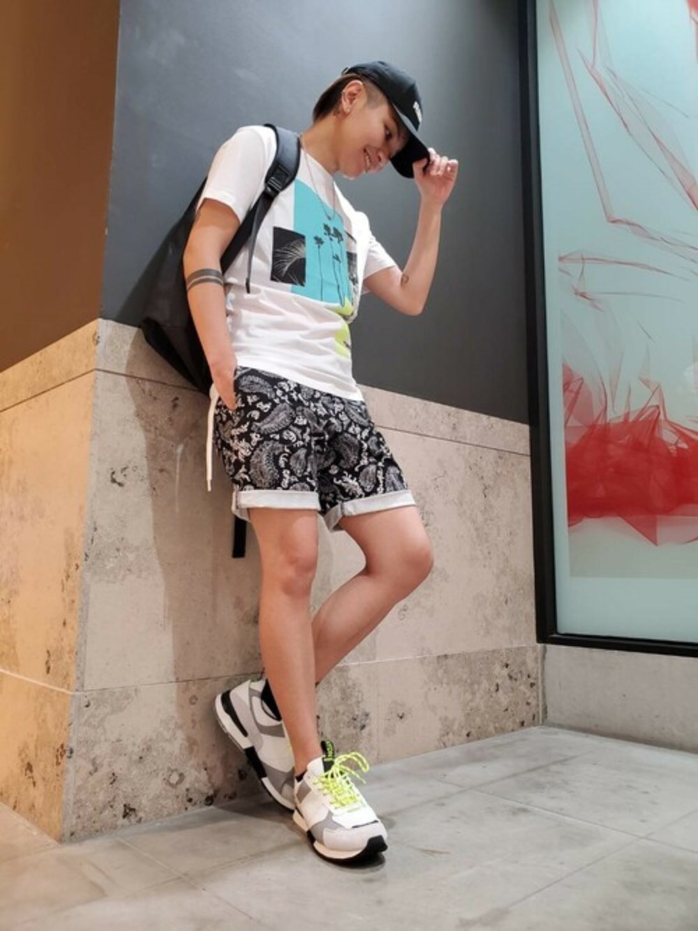 今年の夏は猛暑予報! パームツリーモチーフのTシャツにペーズリーのショーツで暑い夏を乗り切ります。