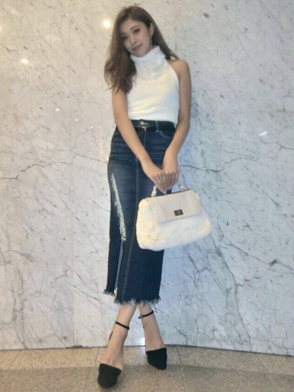RESEXXYのデニムスカート「ロングスリットデニムスカート」を使ったコーディネート