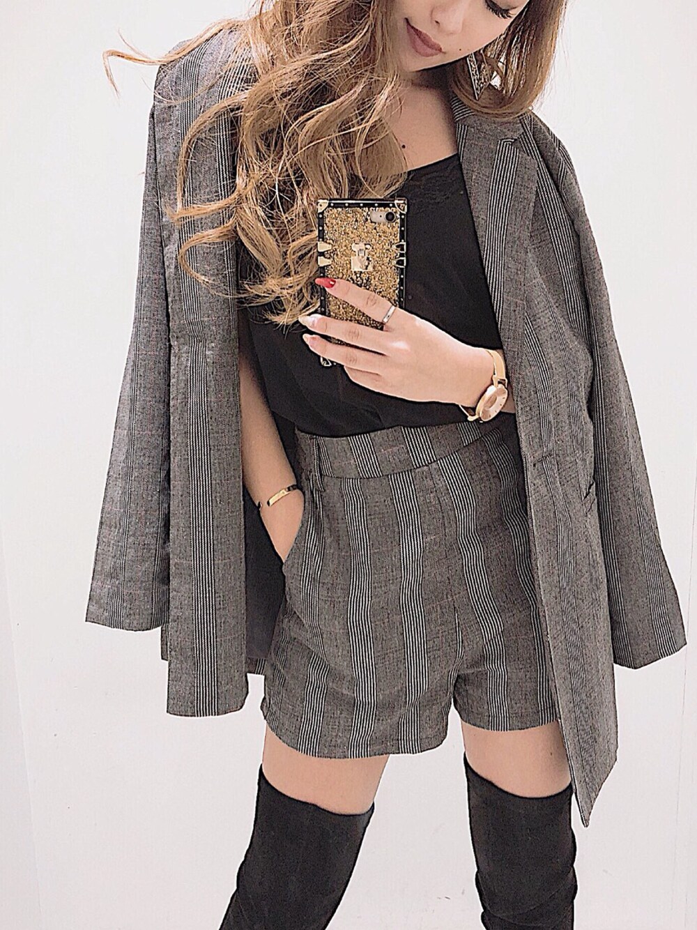 チェック柄で秋先取り❤︎ ニーハイで合わせて ジャケットコーデも女らしく✨