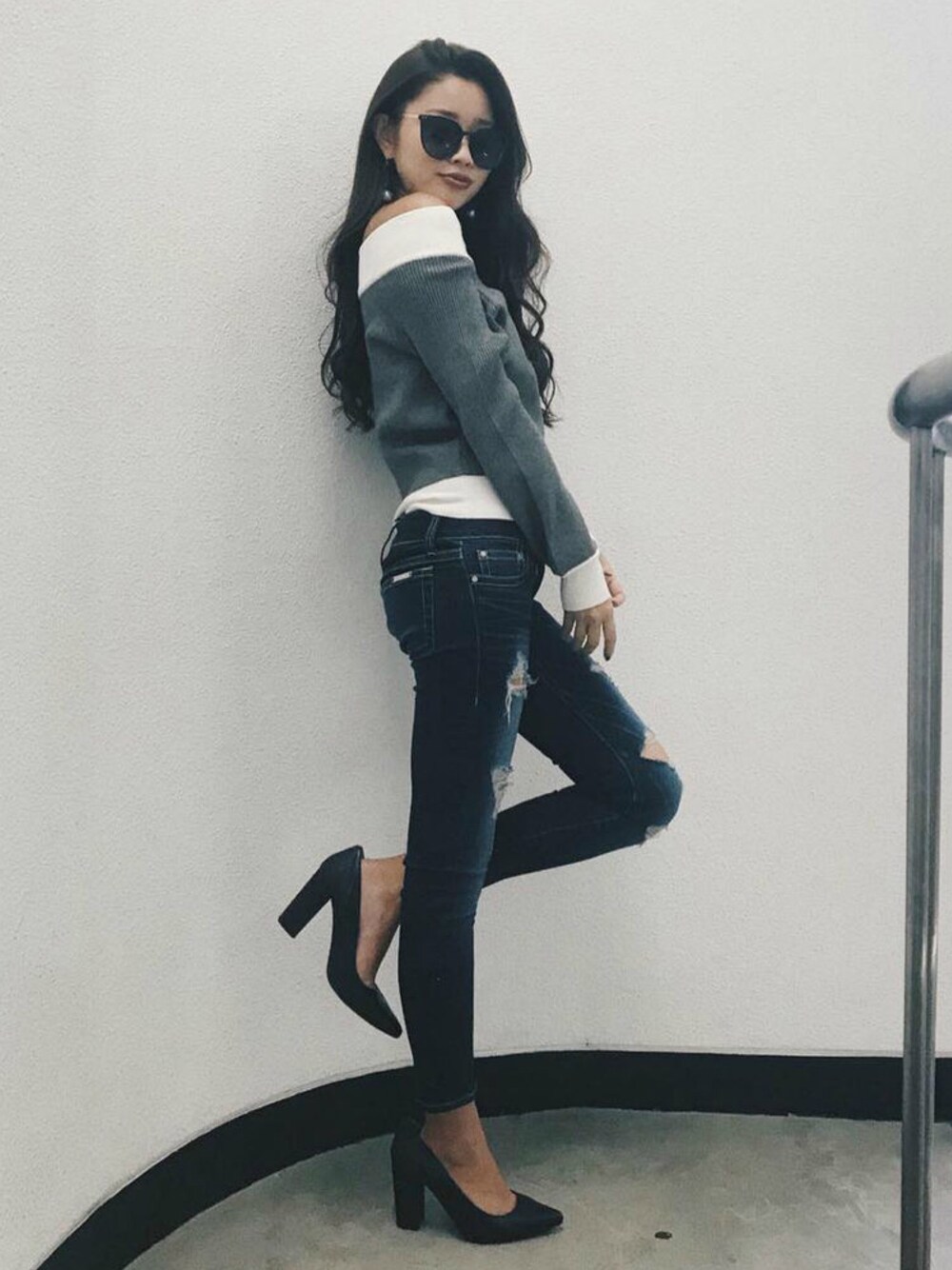 RESEXXYのニット/セーター「【WEB限定】配色オフショルニットトップス」を使ったコーディネート