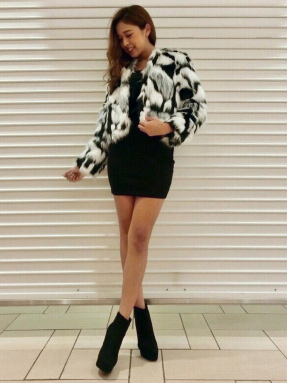 ボリューム感のあるアウターはミニボトムとの相性抜群! ジャケットがショート丈なのでスタイルアップ効果も♡
