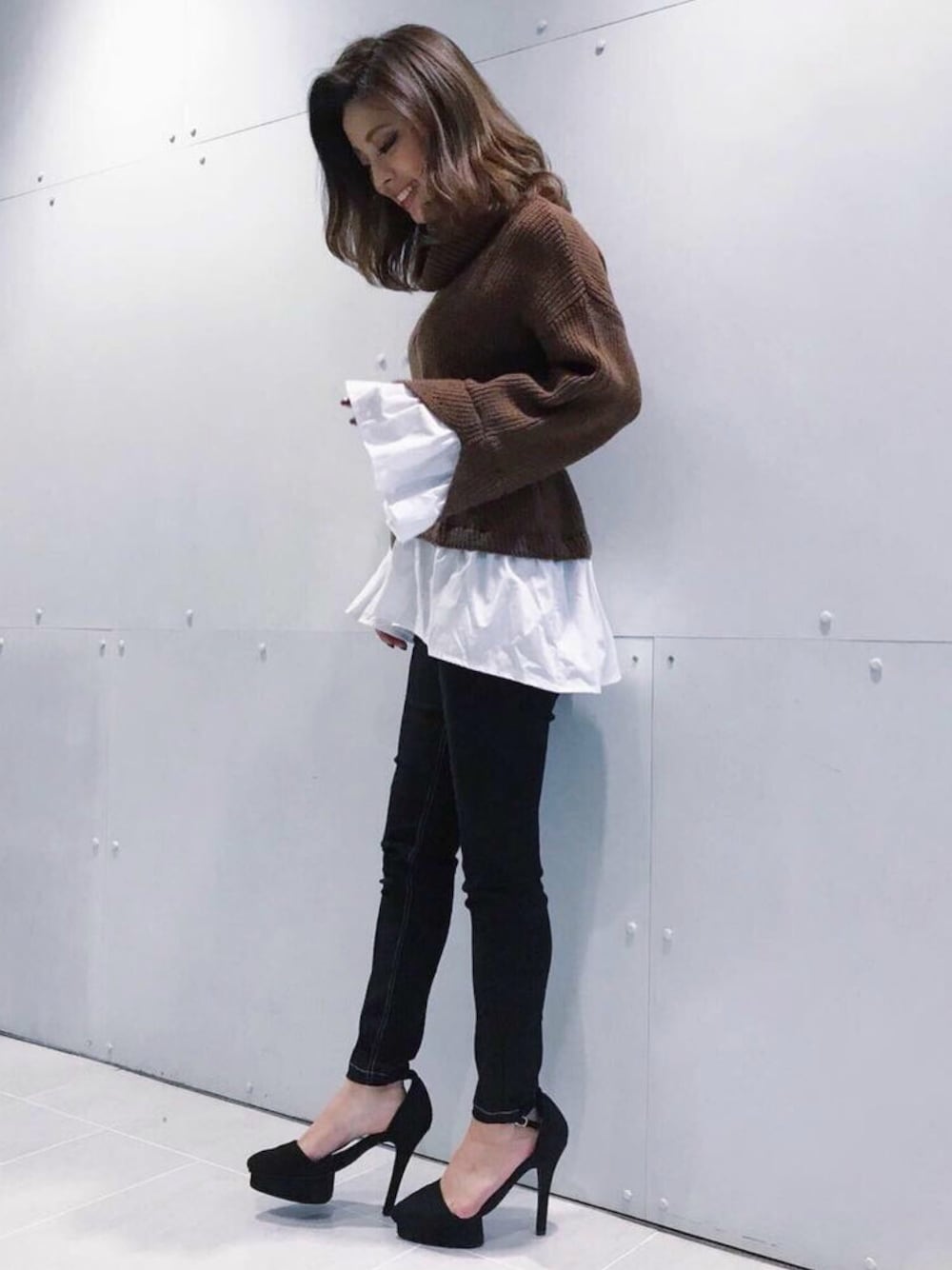 RESEXXYのニット/セーター「シャツレイヤードタートルニットトップス」を使ったコーディネート