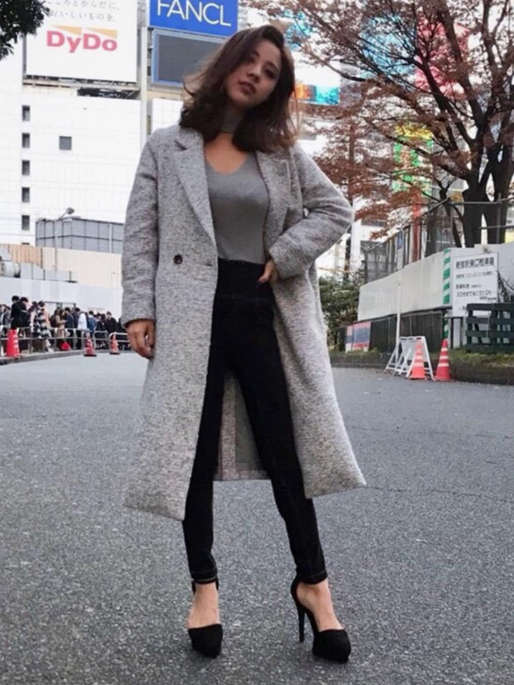 RESEXXYのチェスターコート「ツイードダブルコート」を使ったコーディネート
