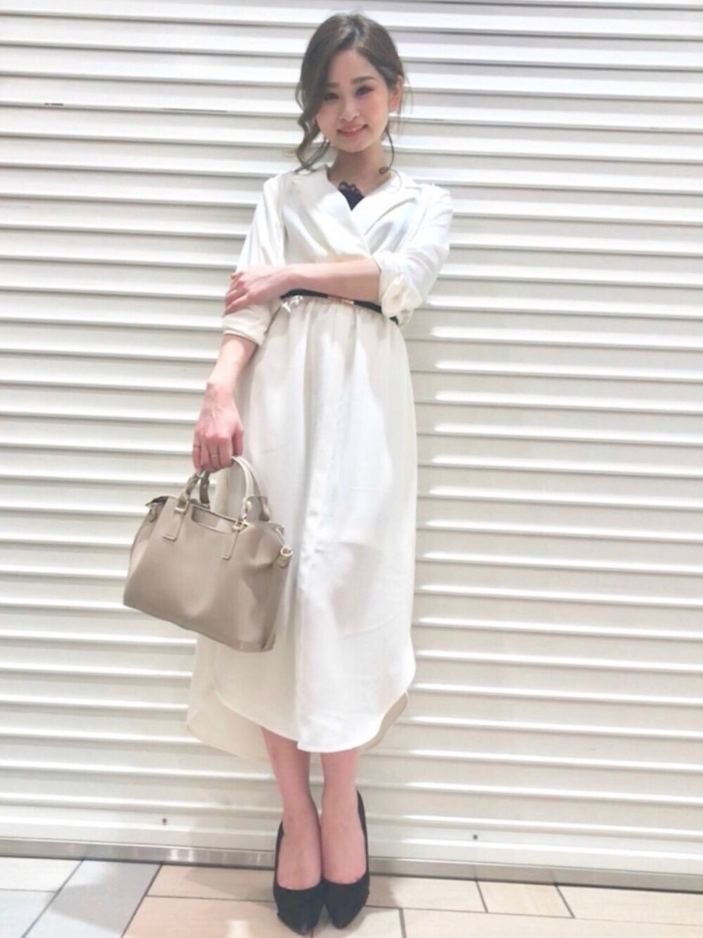 春の定番シャツワンピに、ポイントでブラックをプラスしました♡ アップヘアーがバランス◎です!! STAFF:seina