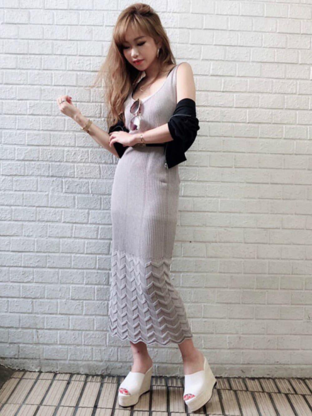 夏素材のワンピースに、ウェッジサンダルでリゾート感UP! ちょっと肌寒いときは、透け感のあるアウターがおススメ。 STAFF:erika Instagram :@erika_kida