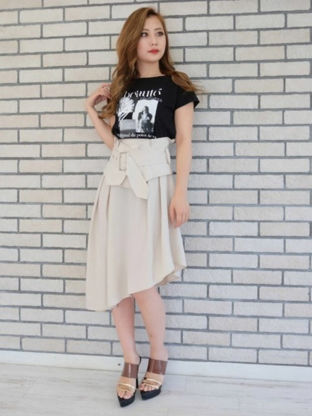 カジュアルなTシャツには、あえてフレアスカートを合わせるのが今年顔! STAFF:mika Instagram :@mika__kaji