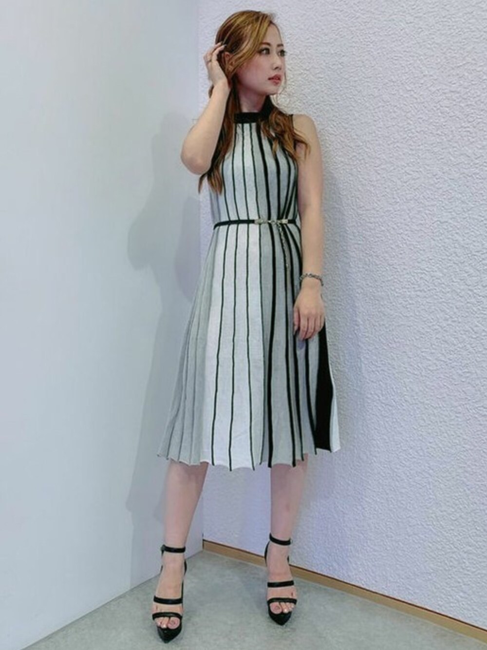 RESEXXYのワンピース「ノースリ配色ニットワンピース」を使ったコーディネート