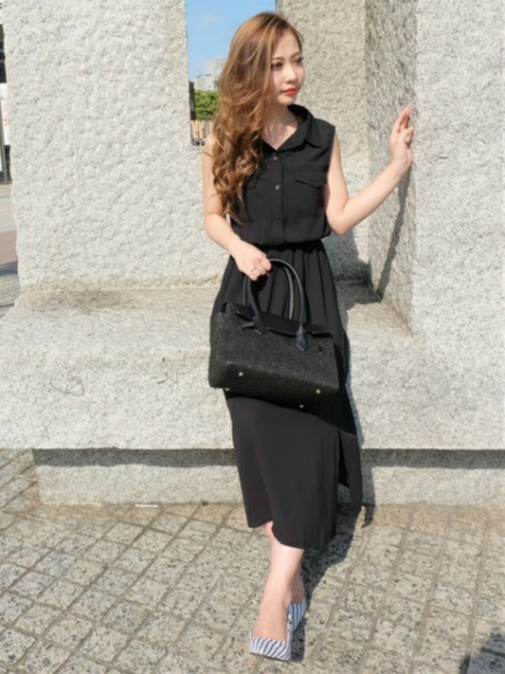 夏のオールブラックコーデは素材感で夏っぽさをプラス♡ ワンピースの透け感と、夏素材のBAGがポイントです! STAFF:mika Instagram :@mika__kaji