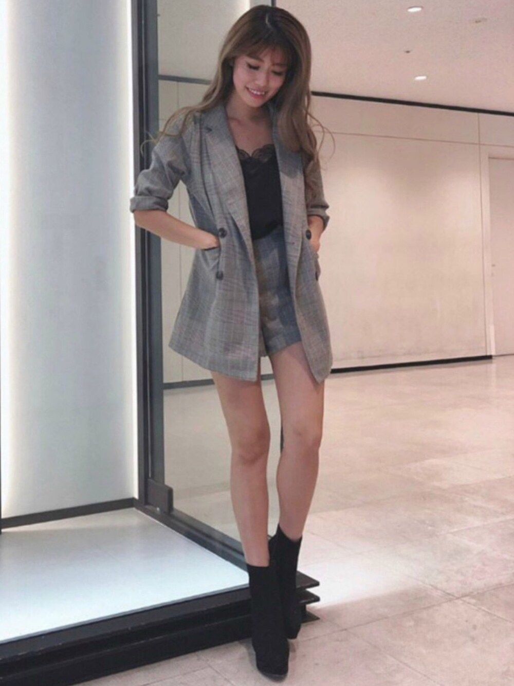 チェックのセットアップは秋のマストITEM! 華奢なレースのキャミソールで女っぽさも♪ STAFF:kazue