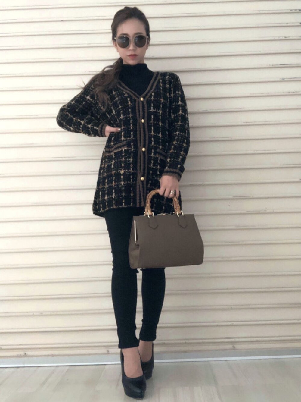 甘めな印象のツイードニット、辛口コーデに。 小物のニットに合わせてブラウンでまとめました。 STAFF:rino Instagram :@rino__arai