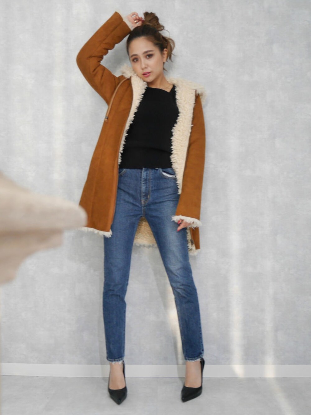 RESEXXYのムートンコート「【WEB限定】フード付裏ボアムートンコート」を使ったコーディネート