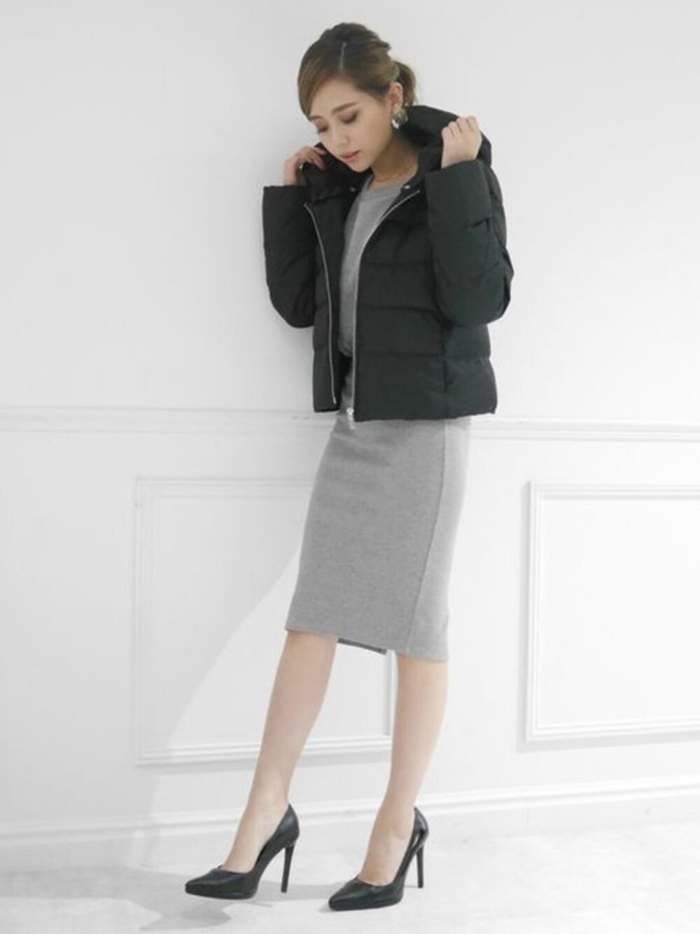 ダウン×裏毛素材のワンピースでも、シルエットにこだわれば女性らしく着こなせます♡ STAFF:isana Instagram :@isana_yamamoto