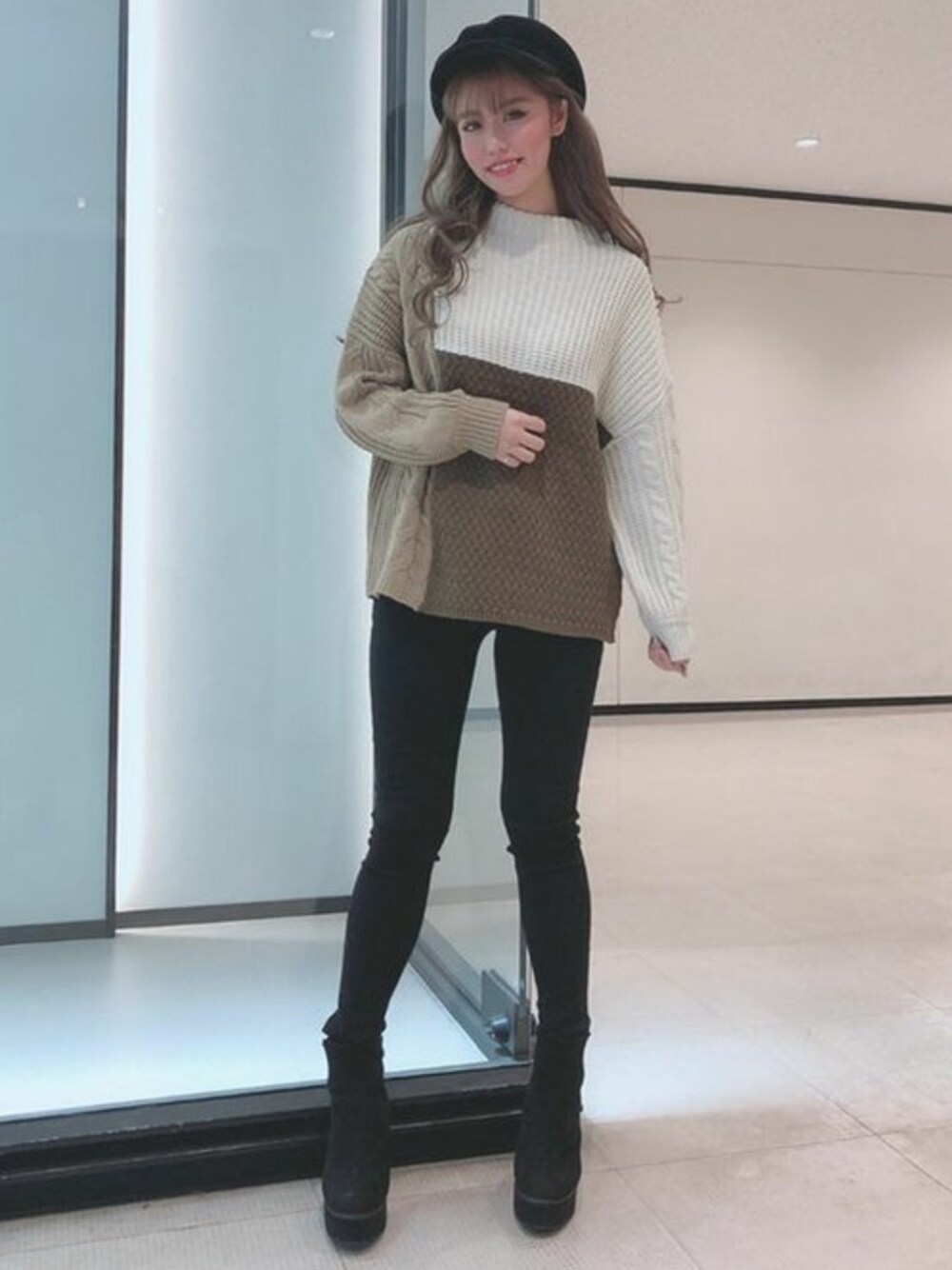 コーデのポイントになる配色ニット。 合わせるITEMはブラックでシンプルに♡ STAFF:kazue