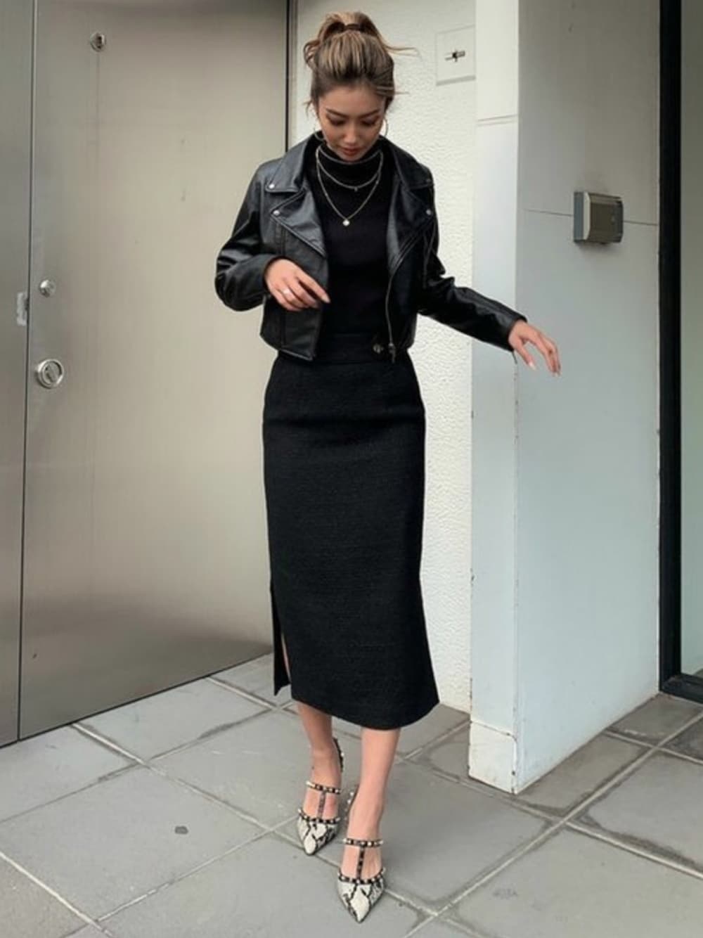 オールブラックコーデにゴールドアクセがポイント! STAFF:yukino instagram:@yukino_resexxy