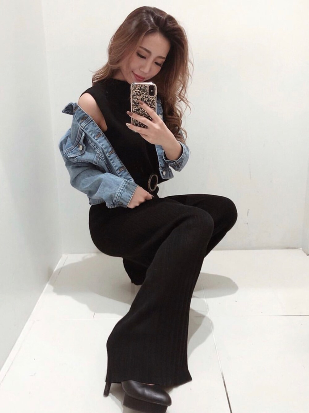 デニムジャケットを 落として着るのがポイント ハイネックのコンビネゾンと 合わせてカジュアルすきず きれいめに!! instagram:@rino__arai